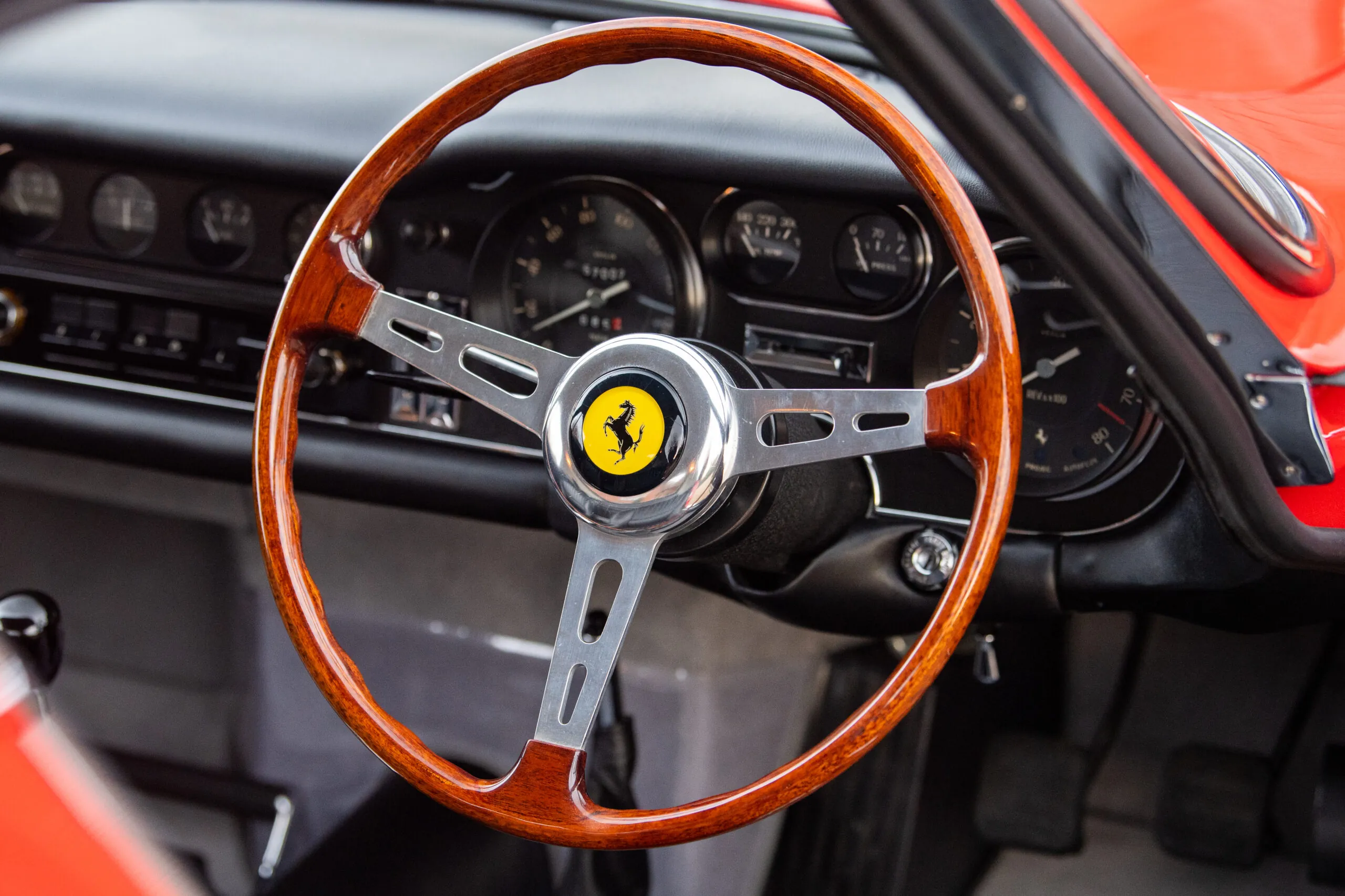 In 2021, Furlonger were entrusted to sell the car, to wit an off-market sale was provisionally agreed subject to inspection via our workshops. Upon inspection, it was clear that the car had been used regularly and had endured the expected wear and tear of a never-before restored 60’s Ferrari, albeit #07597 retained its original matching number engine, gearbox, chassis, and body. Typically, the 275 GTB was presented in Rosso Corsa when it arrived with us, but upon researching its original configuration it left the gates of Maranello in Rosso Cina. The 275’s purchaser, and now third keeper of the car commissioned our workshops to extensively restore #07597 to its original specification, with an emphasis on restorative works rather than replacement where applicable.